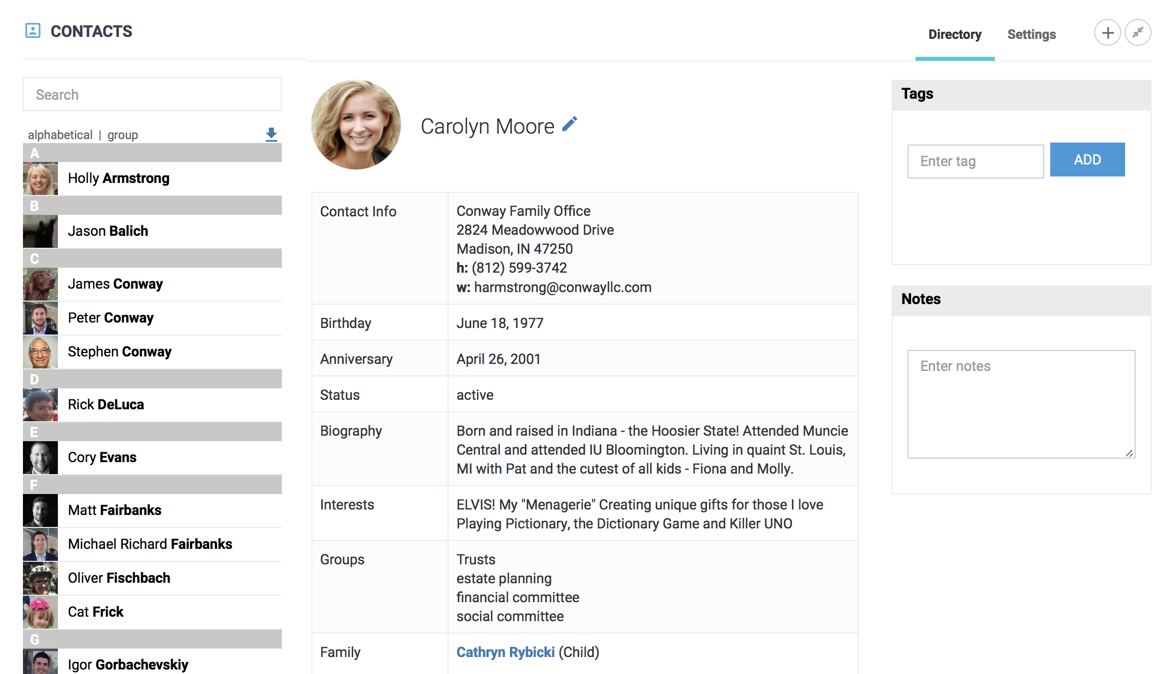 Offer a shared contact directory that also shows family relationships, photos, and richer details than consumer contact apps. Users can restrict access to personal contacts.